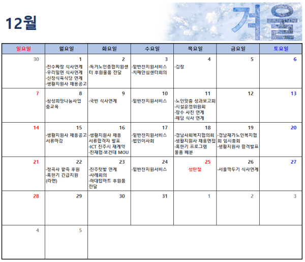 12월 일정표